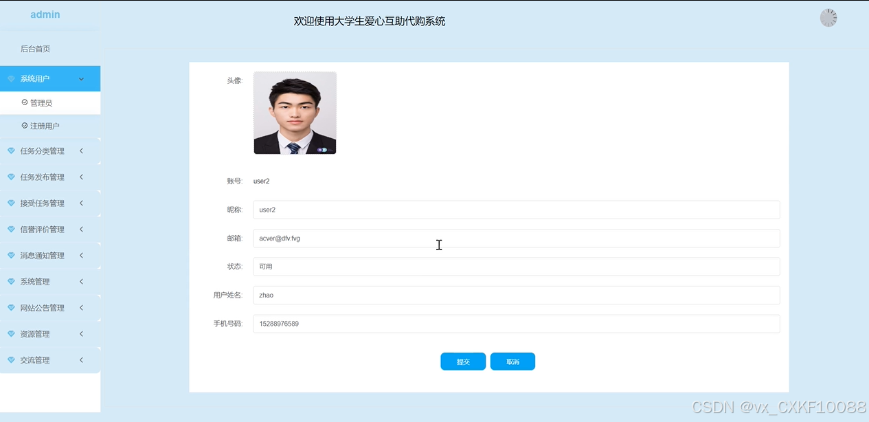 系统用户管理:管理员可以对注册用户和其他管理员进行管理,包括添加、编辑和删除用户信息等操作。