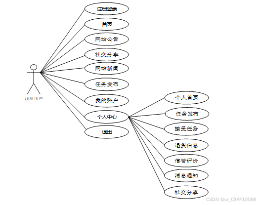 个人中心:用户可以管理个人信息、发布的任务、接受的任务、退货信息、信誉评价、消息通知等。