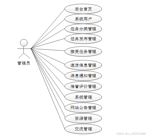 管理员是维护整个大学生爱心互助代购系统中所有数据信息的。管理员角色用例如图3-5所示。