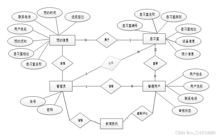 (2)数据库设计和表结构设计:设计系统的数据库结构,包括用户表、自习室表、预订表等,并进行数据库的创建和表结构的设计工作。