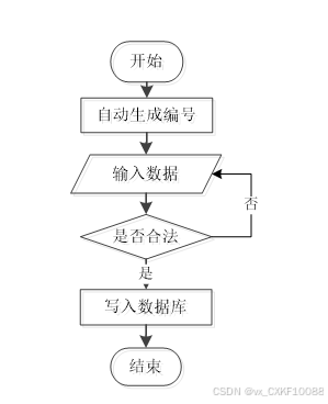 用户成功登入系统后就能够实现增加数据的操作,增加数据的编号是特定的,系统生成,用户不能随意填写,除了编号以外,其他增加信息用户自己填写,填写后的信息经过系统验证,验证合法通过就显示增加数据成功了,相反的话,就没有增加成功,图3-3显示的就是在增加数据时的流程。