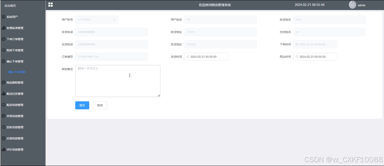 图5-10管理员安排确认下单发货管理界面