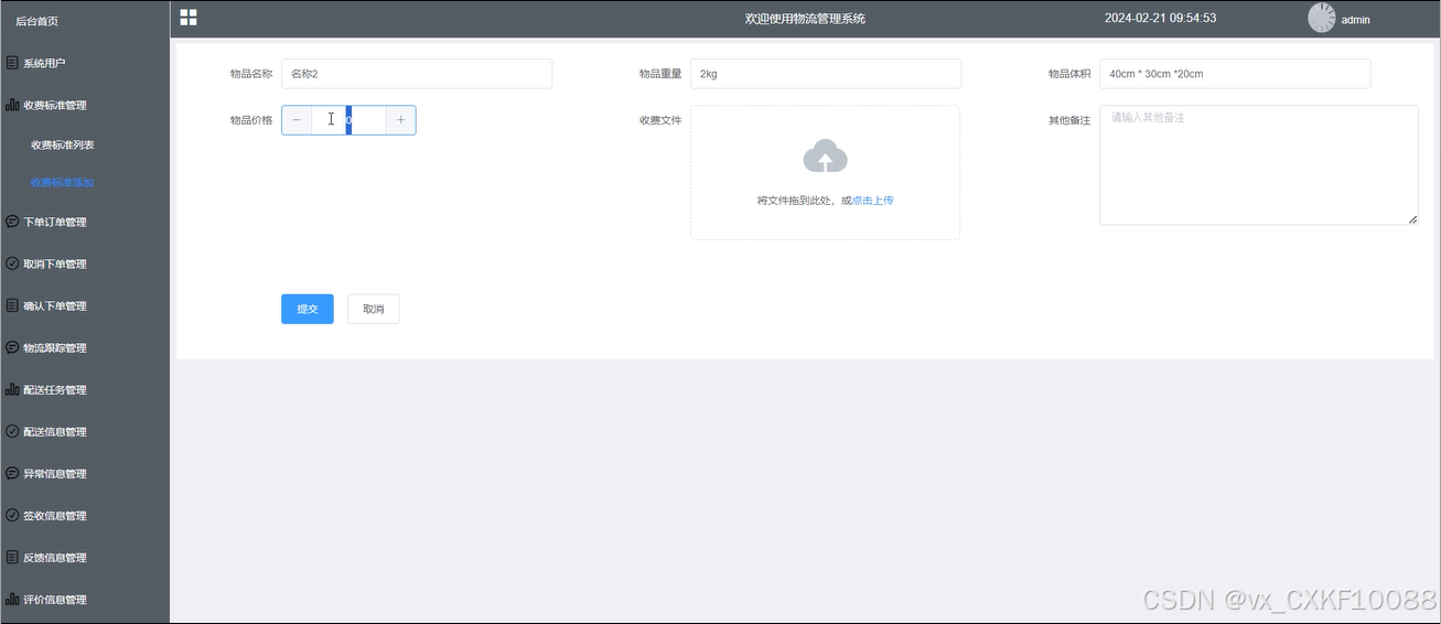 图5-7新增收费标准管理界面