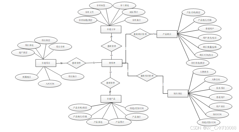 (8)非遗产品管理:非遗产品管理中,管理员可以列出所有非遗产品的信息,包括产品名称、类型、地区等。新增产品时,管理员负责录入完整信息。查看产品详情和用户评论也是其职责之一。通过关键词查询功能,管理员可以快速找到特定的非遗产品。对于不再需要的产品信息,管理员可以进行删除操作。同时,管理员还支持通过产品名称、产品类型、产品地区进行搜索,以满足特定的查询需求。