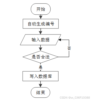 用户成功登入系统后就能够实现增加数据的操作,增加数据的编号是特定的,系统生成,用户不能随意填写,除了编号以外,其他增加信息用户自己填写,填写后的信息经过系统验证,验证合法通过就显示增加数据成功了,相反的话,就没有增加成功,图2-1显示的就是在增加数据时的流程。