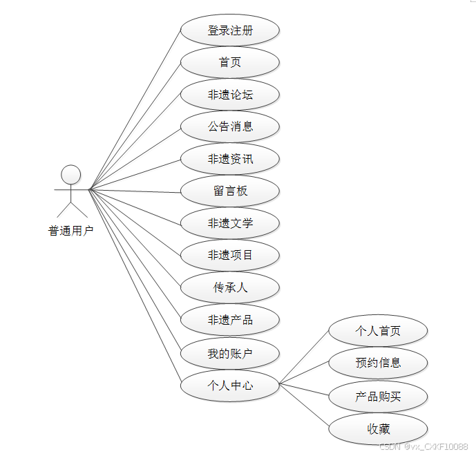 图2-4 非物质文化遗产展示系统普通用户角色用例图