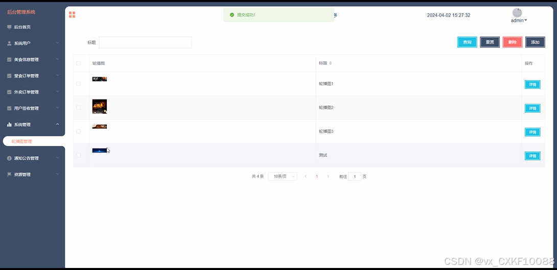 轮播图管理: 管理小程序首页轮播图信息,包括添加、编辑和删除等操作。