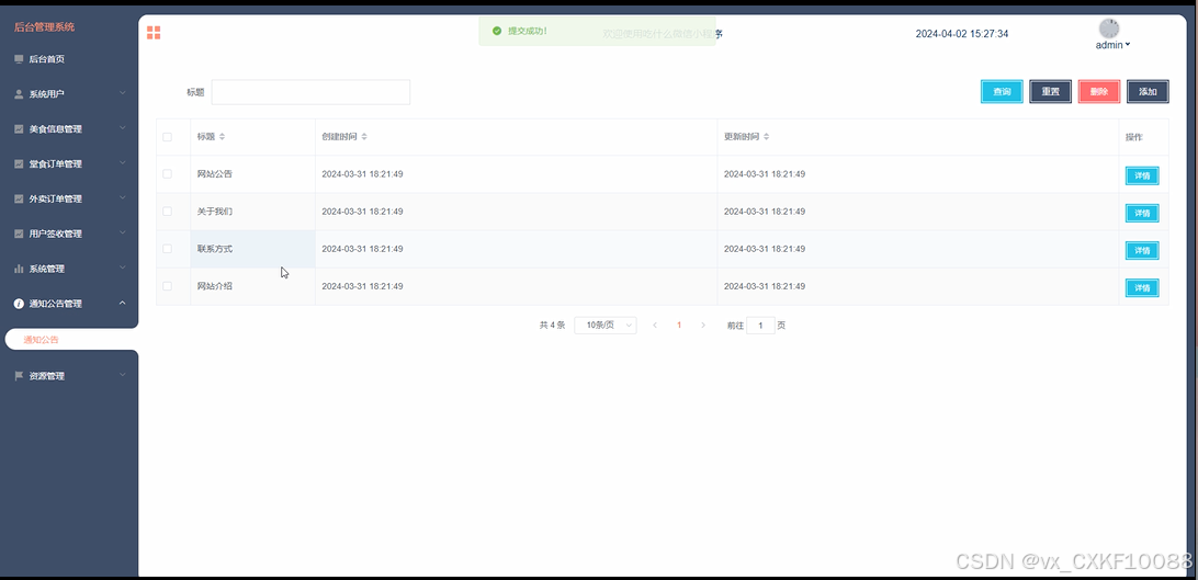 通知公告管理: 管理系统发布的通知和通知公告,包括添加、编辑和删除等操作。