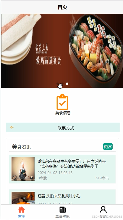 首页: 展示最新的美食信息和美食资讯,引导用户进入相关功能模块。