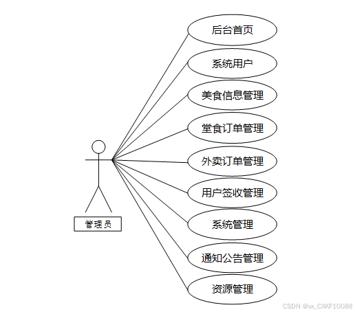 管理员是维护整个基于django的吃什么--微信小程序中所有数据信息的。管理员角色用例如图2-5所示。