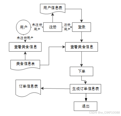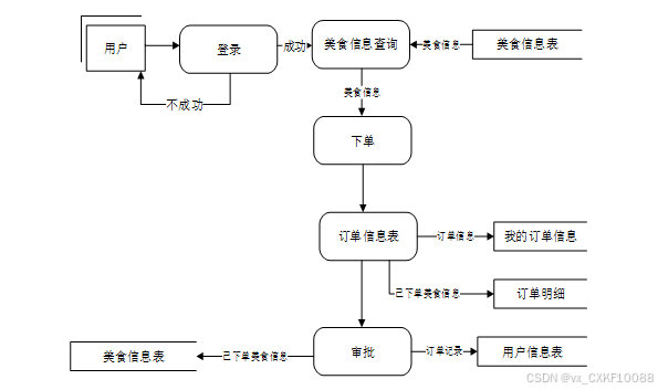 基于Django的吃什么-微信小程序主要的目的之一就是实现用户线上下单美食,图2-1就是系统的数据流图。