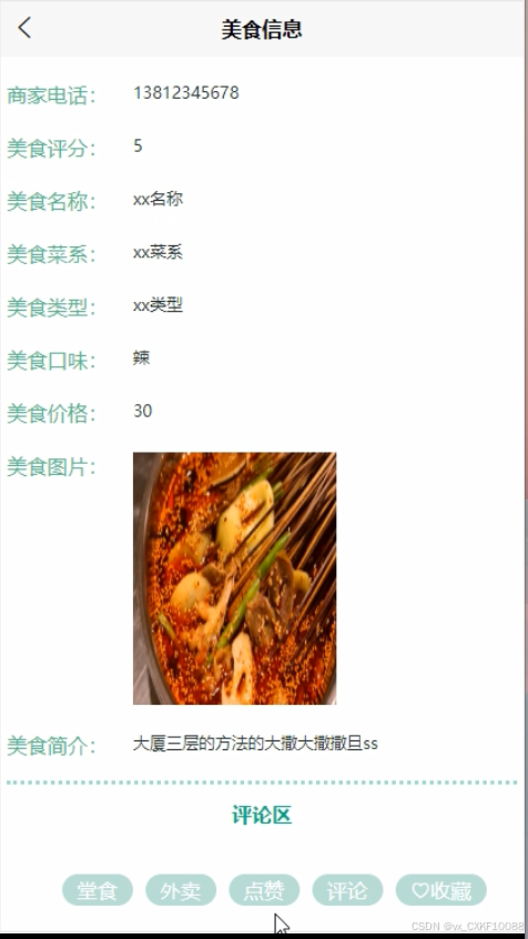 美食信息: 提供各类美食的详细信息,包括图片、价格、评价等。