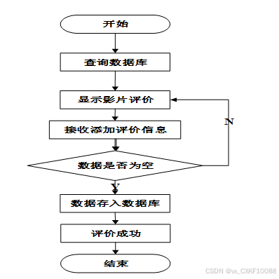 用户可以发布影评信息,分享自己观影的感受和评价,与其他用户进行交流和讨论。影片评价添加流程图如下图所示。