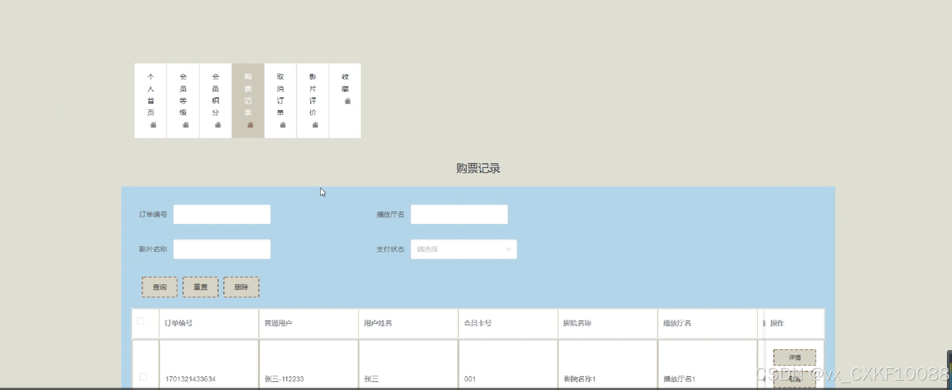 在系统的实现过程中,我们注重用户界面的友好性和交互性。通过使用vue.js、CSS和JavaScript等前端技术,我们设计了直观美观的用户界面,并实现了用户注册、登录、电影浏览、在线购票和支付等核心功能。
