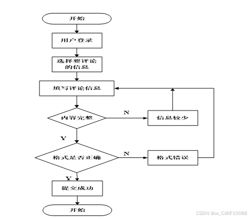 用户可以对电影做出评论。点击按钮之后会跳转至评论填写页面,填写评论内容提交。评论添加流程图如下图所示。