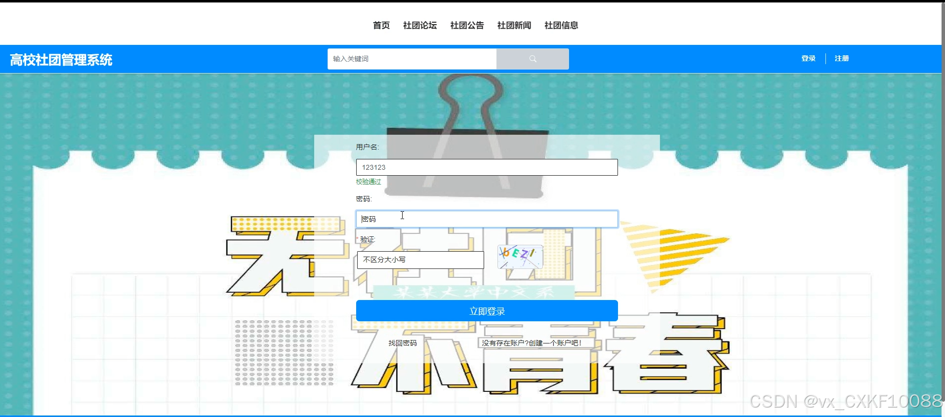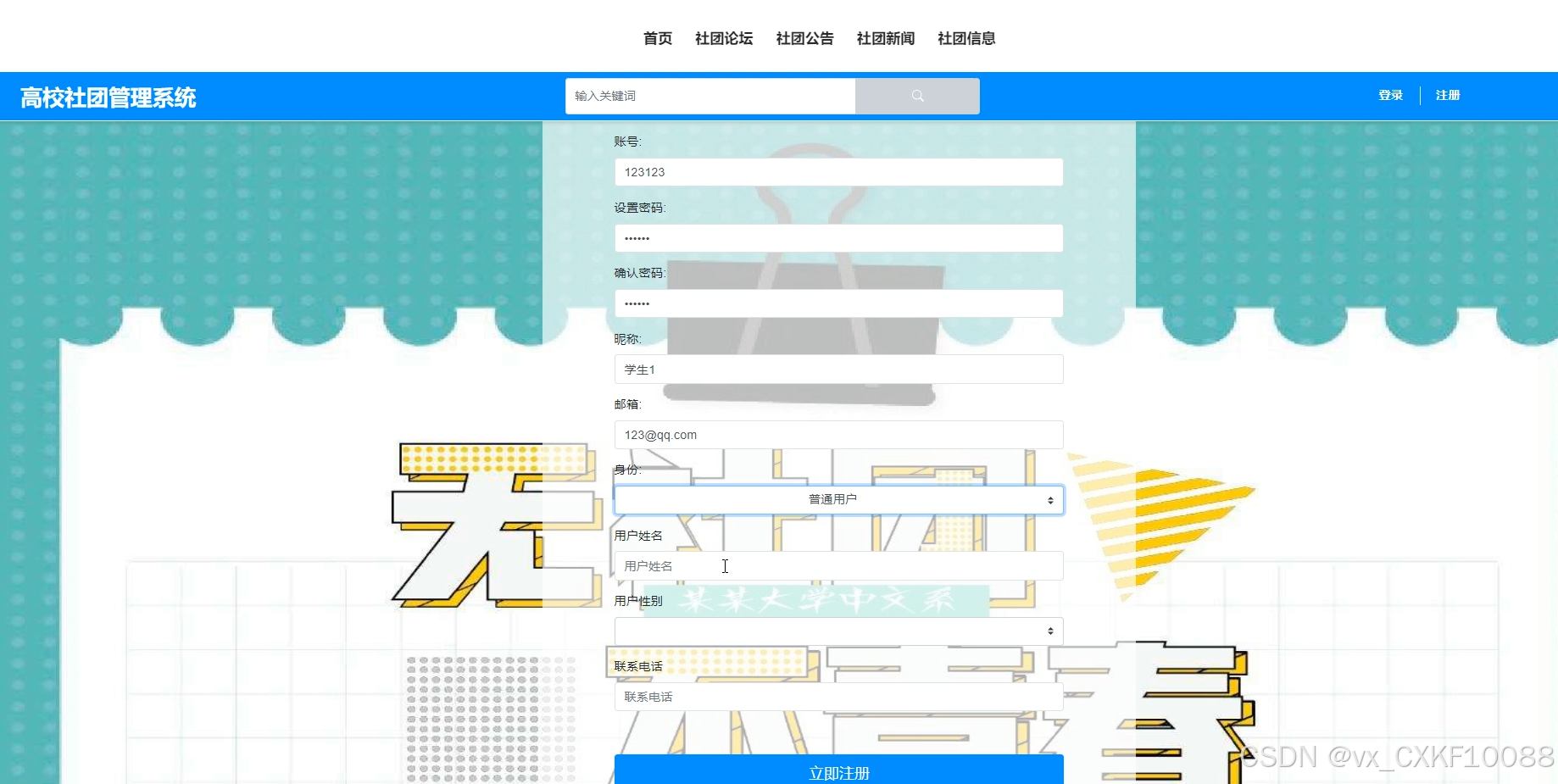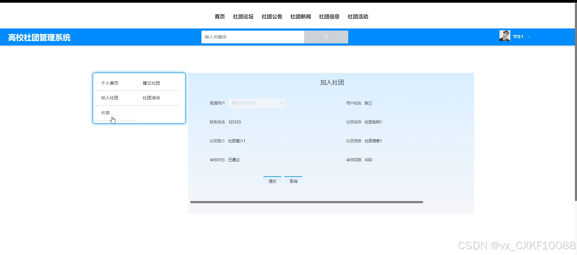 | 预期结果 | 提交以后,页面首页会显示新的社团信息 | ||