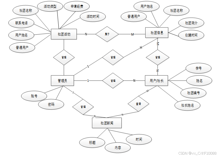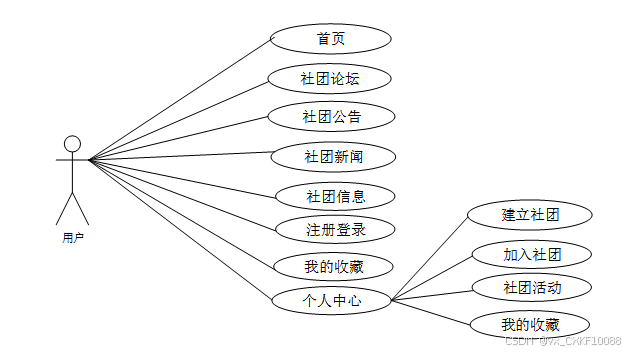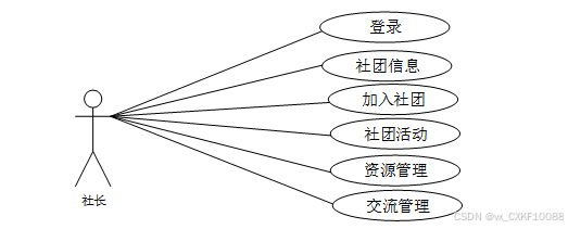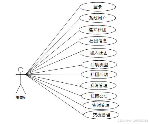 通过2.3功能的分析,得出了本高校社团管理系统的用例图: