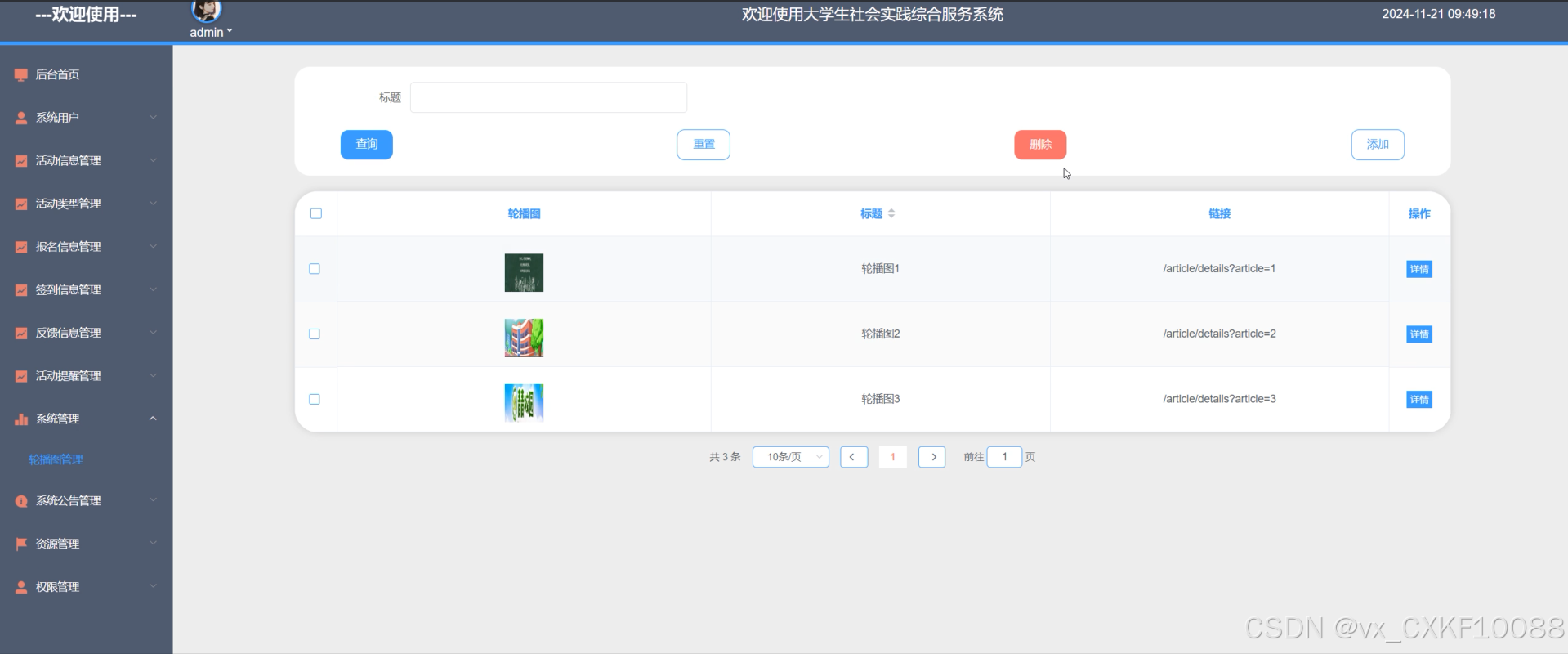 - 首页:普通用户登录系统后首先进入首页界面,可查看轮播图和其他系统功能导航栏。
