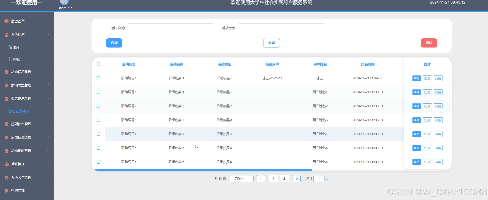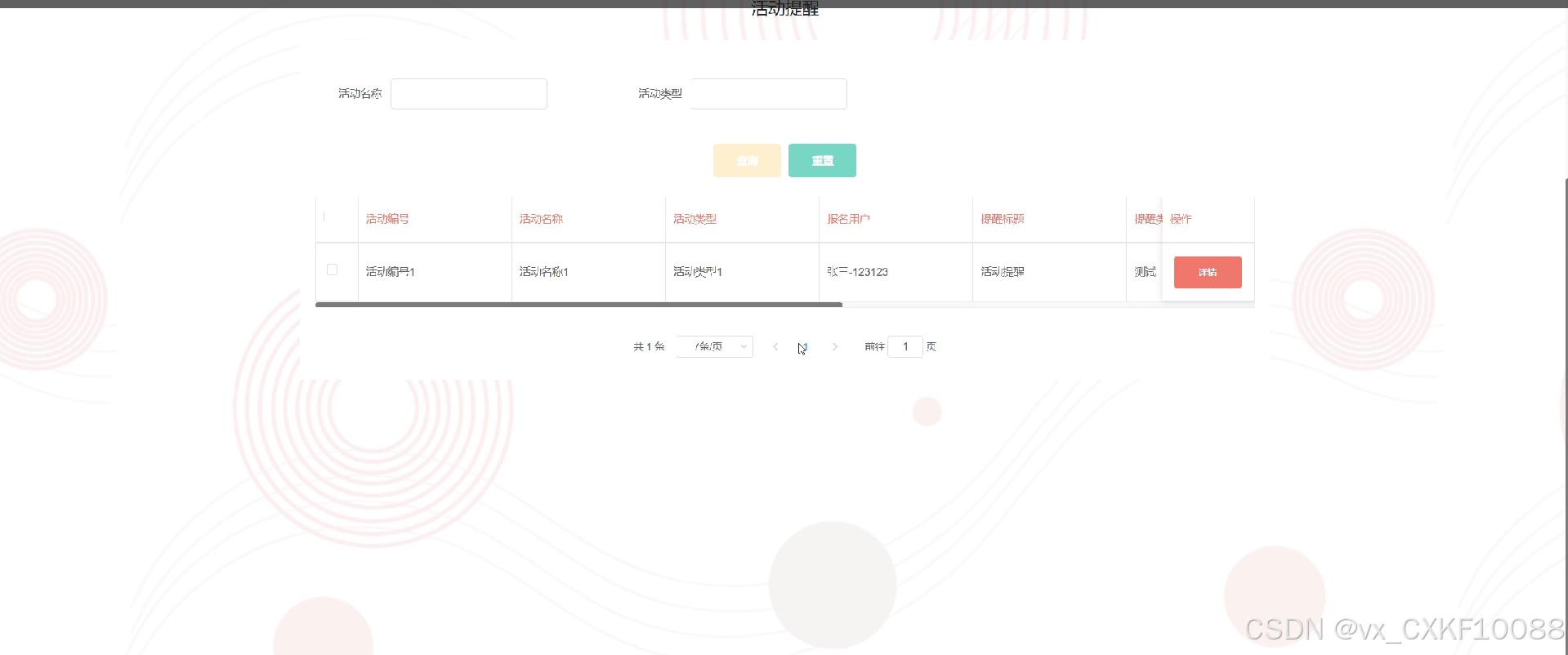 - 活动信息:点击活动信息界面查看具体的活动编号、活动类型、活动名称、举办地点、举办时间等详情。