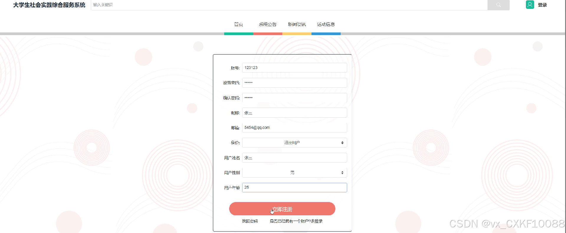 - 报名信息:用户可以选择某个一活动界面点击报名,提交活动报名信息。