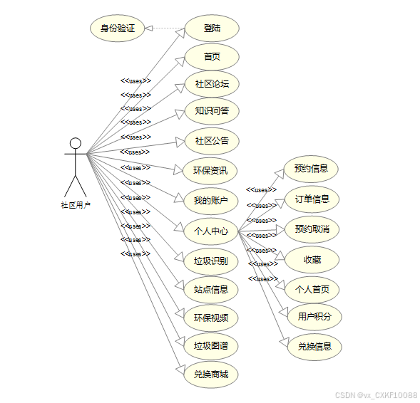 (1)社区用户角色用例图如下图所示。