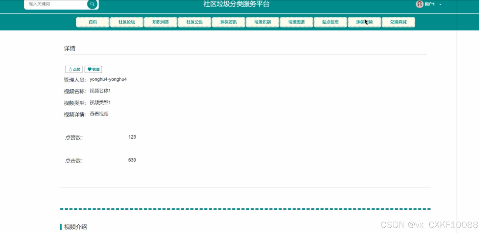 springboot社区垃圾分类服务平台中,社区用户和管理用户在环保视频功能中扮演着重要角色。社区用户可以观看、点赞、评论和分享环保视频,学习垃圾分类和环保知识,提升环保意识。管理用户则负责上传、审核和管理环保视频内容,确保视频质量符合社区标准,同时根据用户反馈优化视频资源,为社区用户提供更加丰富、专业的环保教育内容,共同促进社区的环保事业。界面如下图所示。