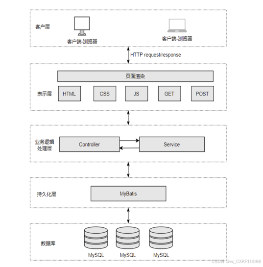 - B/S模式三层结构图