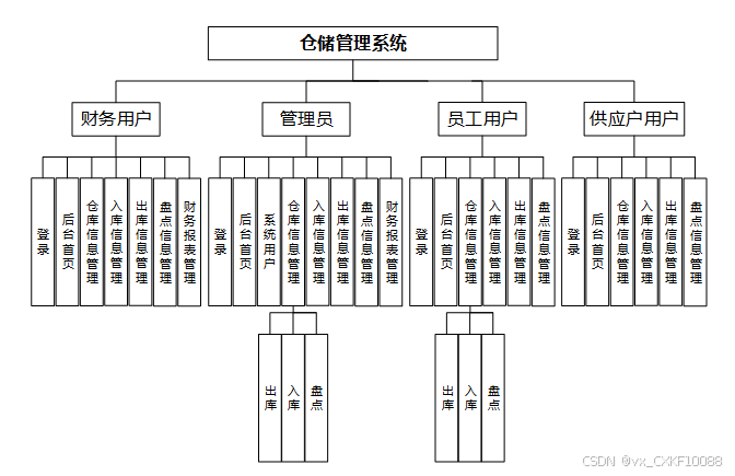 The system divides functional permissions based on different user roles, including employee users, financial users, supplier users, and administrators. Employee users can manage warehouse information, perform inventory entry and exit operations, and conduct stocktaking; financial users focus on information statistics and financial report management; supplier users have query permissions to monitor inventory dynamics in real time; administrators are responsible for overall management, including user account and system data maintenance. With the support of the SpringBoot framework, the system achieves modular design, offering excellent scalability and stability, providing comprehensive warehousing management support for agricultural and livestock product wholesalers.