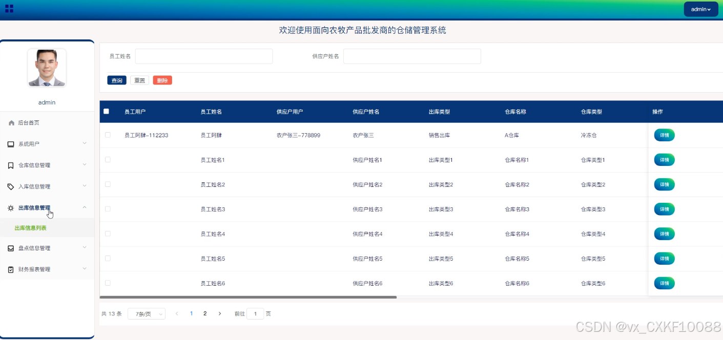 - 出库信息管理:员工用户可以对出库信息进行删除和查询操作,同时也可以查看每一条出库信息的详细内容,这些功能有助于员工对出库流程的监控和管理。