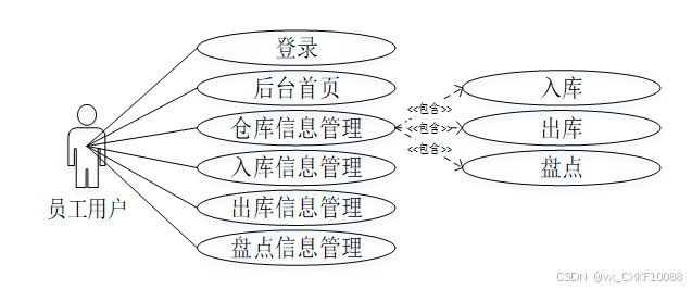 - 面向农牧产品批发商的仓储管理系统员工用户角色用例图