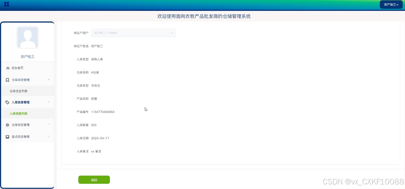 - 入库信息管理功能:用户可以查询入库信息,并查看每一条入库记录的详细情况,以确保入库流程的透明度和准确性