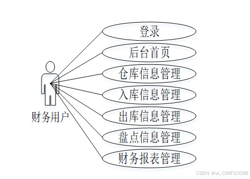 - 面向农牧产品批发商的仓储管理系统财务用户角色用例图