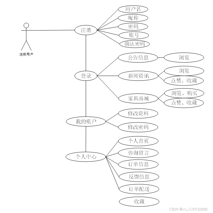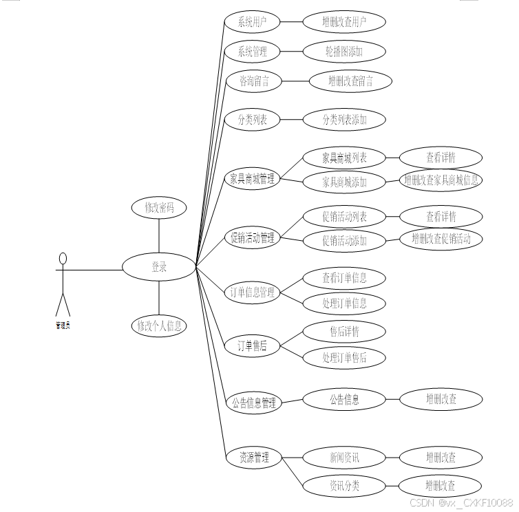 基于Springboot的家具商城系统旨在通过集成先进的信息技术,为家具企业和游客提供一个高效、便捷、全面的家具商城平台。系统总体功能性设计围绕电影购票的核心业务流程展开,主要包括以下几个功能模块: