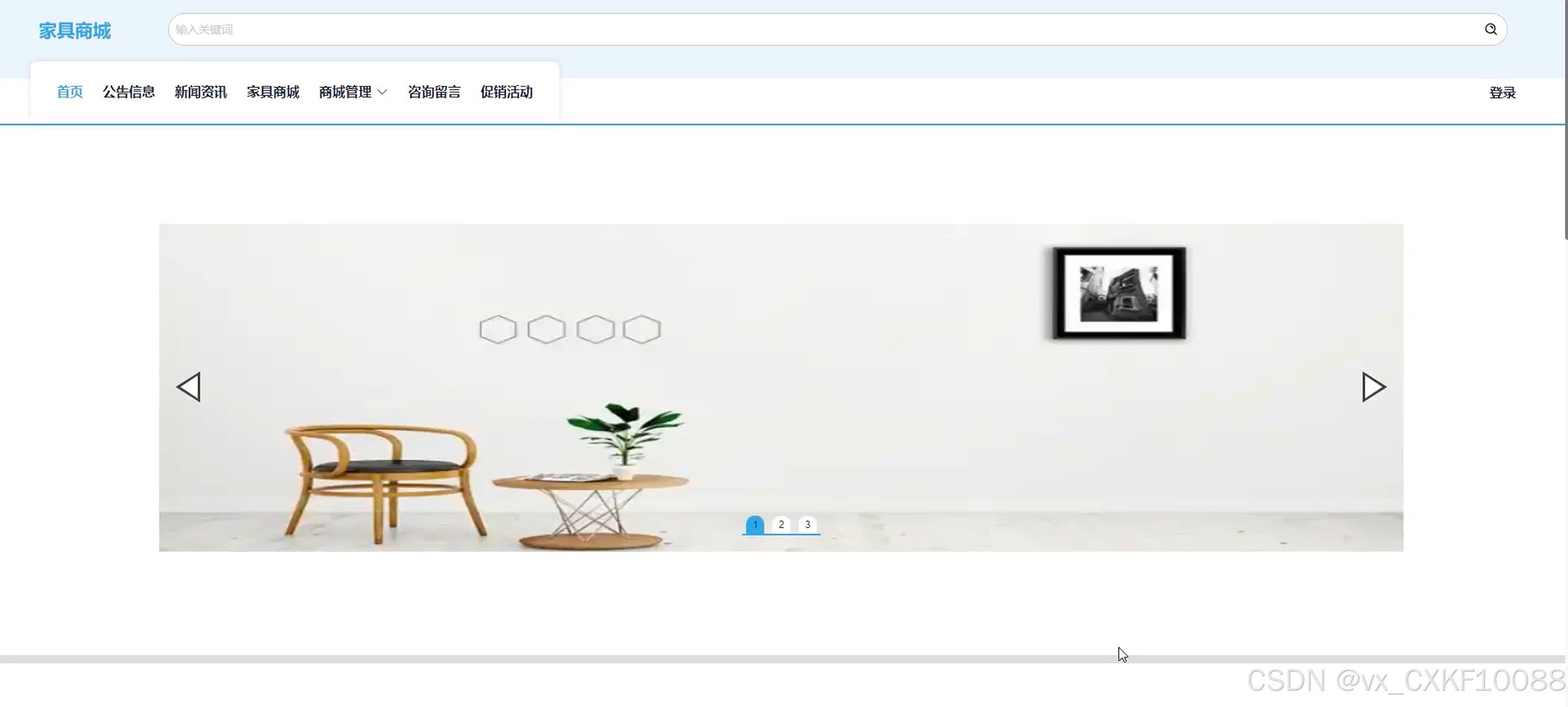 (1)首页:首页包含轮播图、家具资讯,家具商城推荐。