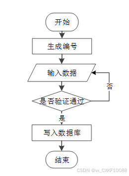 用户成功登入系统后就能够实现增加数据的操作,增加数据的编号由系统生成,用户不能随意填写,除了编号以外,其他增加信息用户自己填写,填写后的信息经过系统验证,验证通过后即可完成数据新增,数据新增的流程图如下图3-3所示。