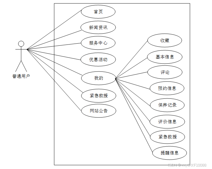 图3-1洗车保养服务APP系统普通用户角色用例图
