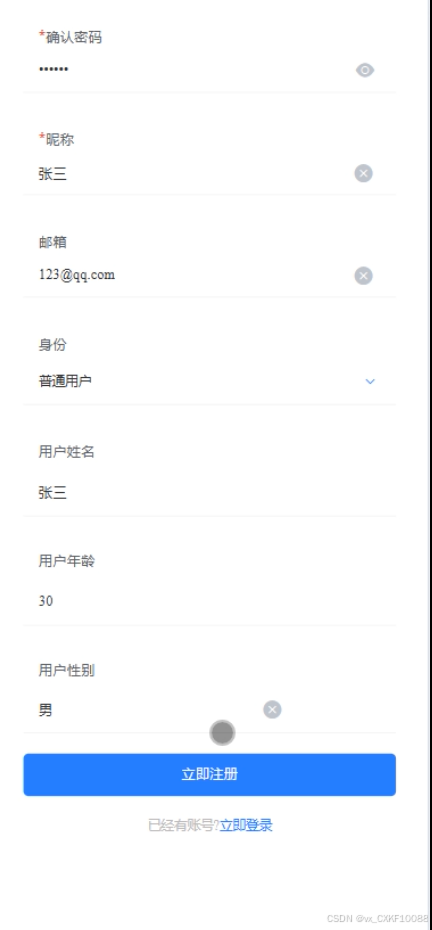 | 输入完整并且格式正确的数据 | 提示“创建成功”,并显示所有数据 | 预期结果 |