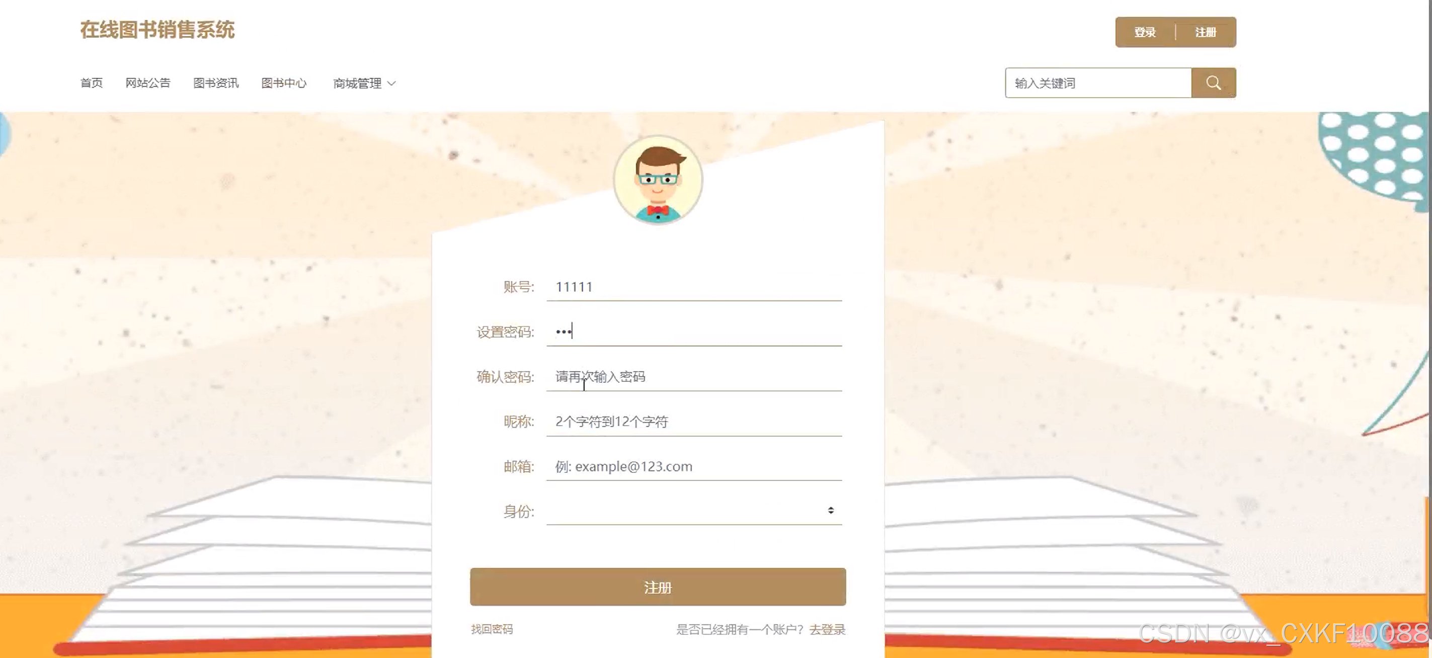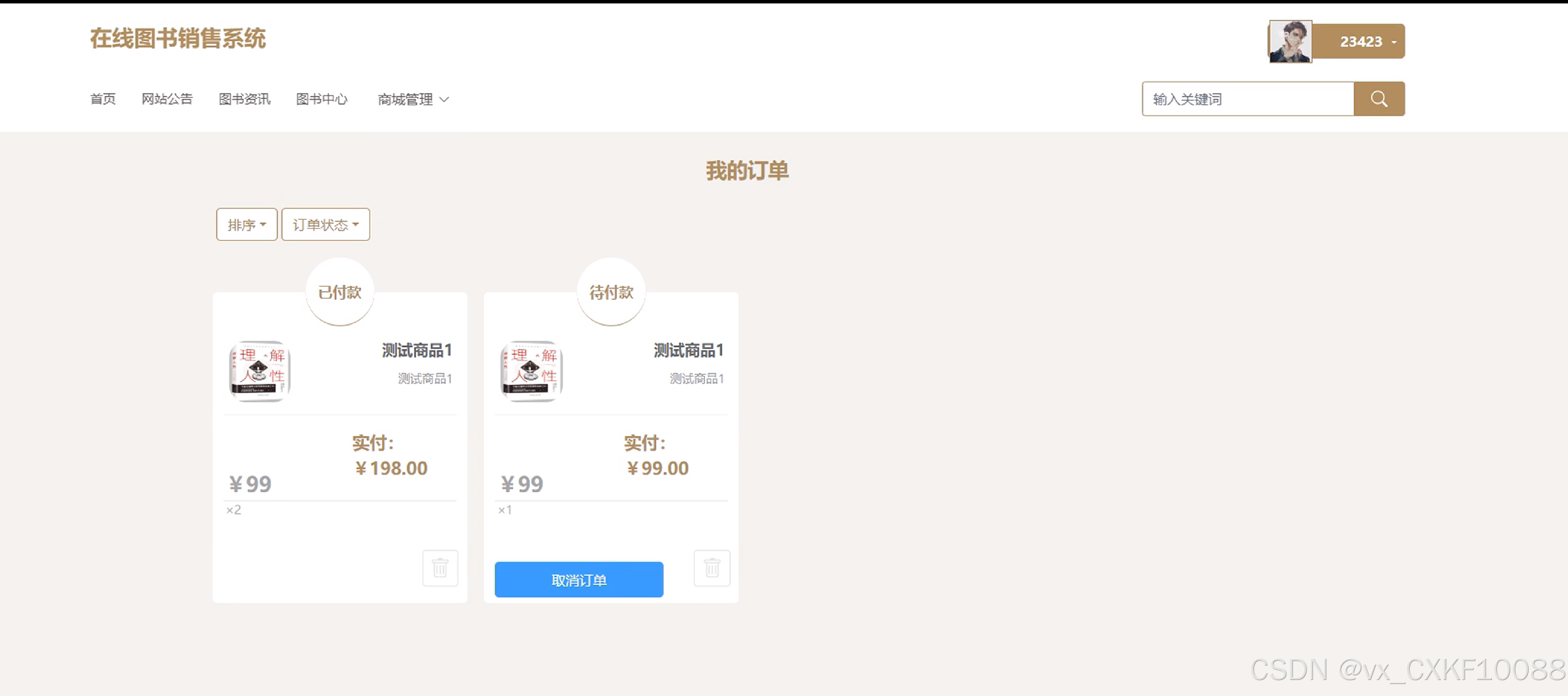 This project develops an online book selling system based on Spring Boot framework, aiming to provide users with convenient book buying experience. The main functions of the system include user registration and login, browsing book information, searching and purchasing books, etc. Users can quickly access the website announcement, book center, personal account management and other functional modules through the home page to achieve effective management of personal information and real-time tracking of order status. In addition, users can also bookmark and review books of interest, and complete the transaction process by shopping cart or direct purchase.