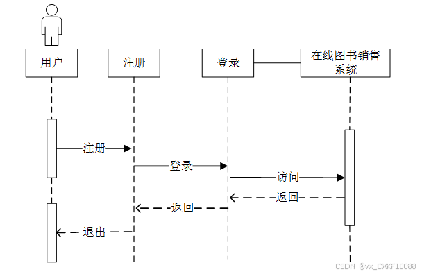 用户通过注册模块发送注册请求,系统完成注册后返回确认信息。随后,用户通过登录模块发送登录请求,系统验证用户信息后允许访问目标系统。用户完成操作后可选择退出,系统终止会话。注册时序图,如图4-3所示。