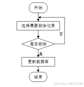 用户选择需要删除的记录后,系统判断是否确认删除。若未确认,返回选择环节;若确认删除,则更新数据库,删除对应记录,完成操作后流程结束。删除信息流程图如图3-8所示。