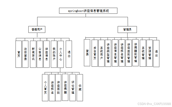 springboot讲座信息管理系统网站包含供普通用户、管理员两个角色划分,每个角色对应的主要功能如下: