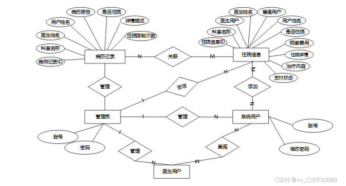 系统主要包括患者、医生和管理员三个角色,每个角色的功能有所不同。患者可以通过系统进行住院登记、查看个人住院信息、申请出院等操作;医生可以查询患者的病历信息、开具住院医嘱、记录治疗情况等;管理员则负责用户管理、住院信息管理、床位管理等后台工作。系统基于Spring Boot框架,结合MySQL数据库进行数据存储,具有高效的响应速度和良好的扩展性。