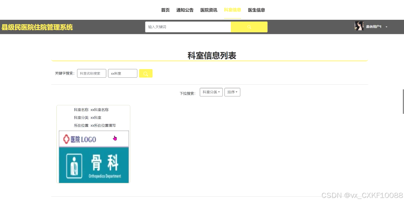 患者可以通过关键词搜索功能得到想要了解的科室的信息,帮助其选择合适的科室进行挂号或就诊。科室信息界面如图5-4所示。