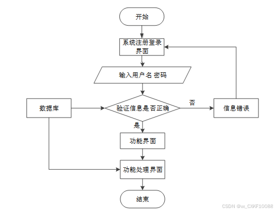 用户注册登录模块主要是为了方便用户和管理员能够安全地访问系统并管理自己的信息。用户通过浏览器访问信息类行业岗位与人才对接智能推荐系统,首先进入的是系统的登录页面。在登录页面,用户可以选择自己的账户角色,并输入相应的账号和密码。系统接收到用户的登录请求后,会将提供的账号和密码与数据库中存储的信息进行比对。如果账号或密码为空或者不匹配,则提示用户重新输入,并停留在登录界面。当账号和密码正确无误时,系统根据用户类型跳转到对应的首页界面。用户注册登录流程如下图所示。
