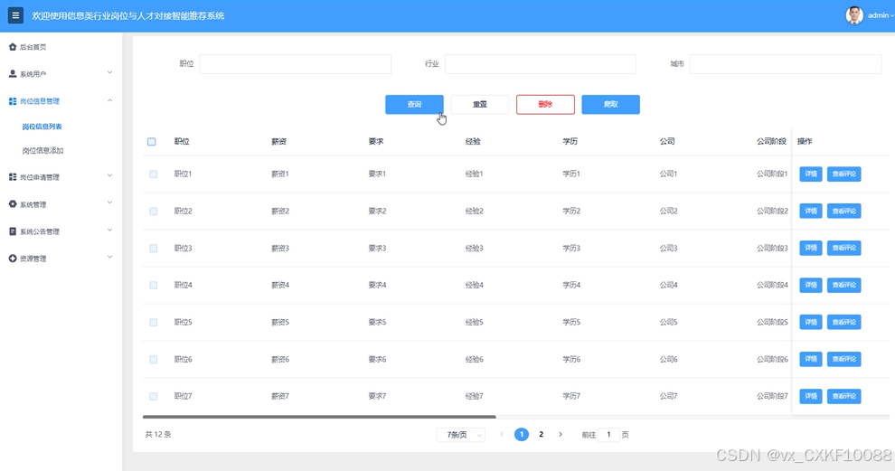 岗位信息管理:审核、发布或下架岗位信息,维护岗位库的真实性与时效性。