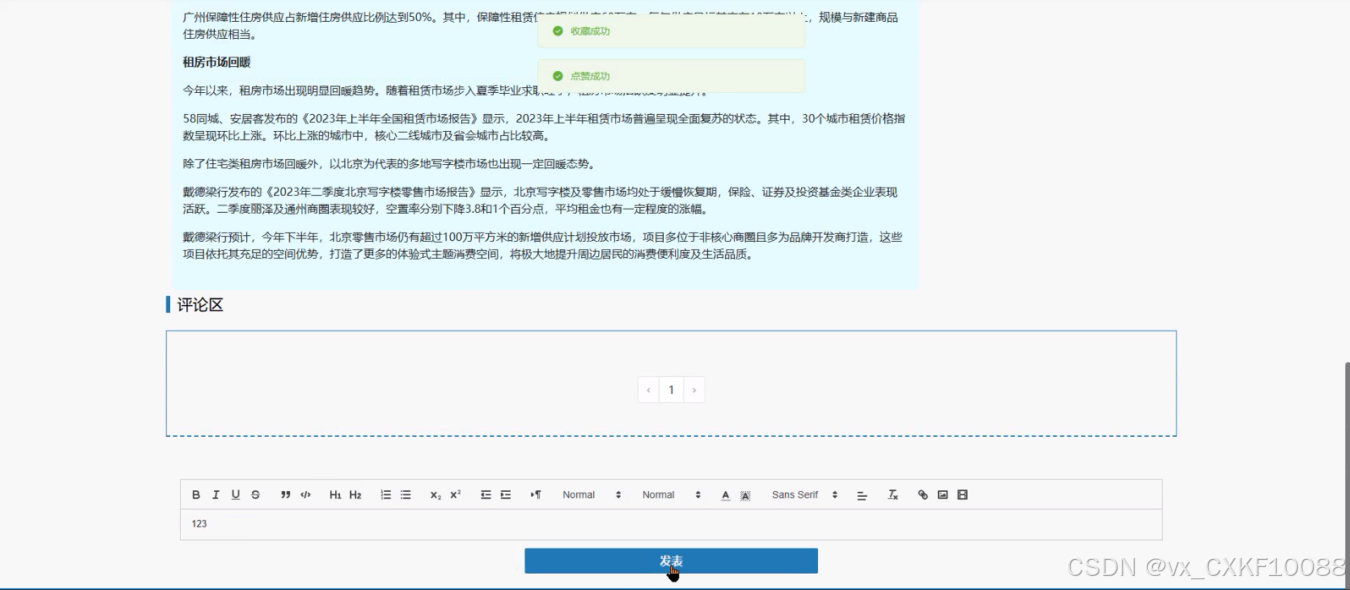 b.发布评论:用户可以根据需要发布自己的评论信息到网站上,分享交流房屋信息、提出问题或建议,促进用户之间的交流和互动。