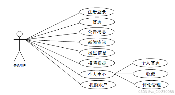 d.搜索房屋信息:用户可以浏览房屋信息,选择感兴趣的房屋信息进行收藏操作,满足个性化需求。