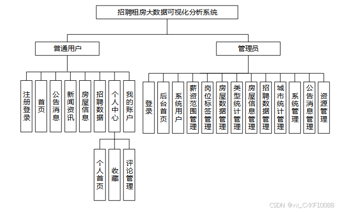 图3.1招聘租房大数据可视化分析系统功能模块图