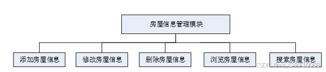 招聘租房大数据可视化分析系统需要一个完善的房屋管信息理模块来存储和管理大量的房屋信息。用户可以浏览房屋信息并进行评论等操作,管理员则具有添加、修改、删除房屋的权限,这样的房屋信息管理模块能够有效地组织和管理房屋信息,提供用户查看房屋信息的便利性,同时为管理员提供房屋信息管理的功能,确保系统的正常运行和用户体验。具体的结构图如下: