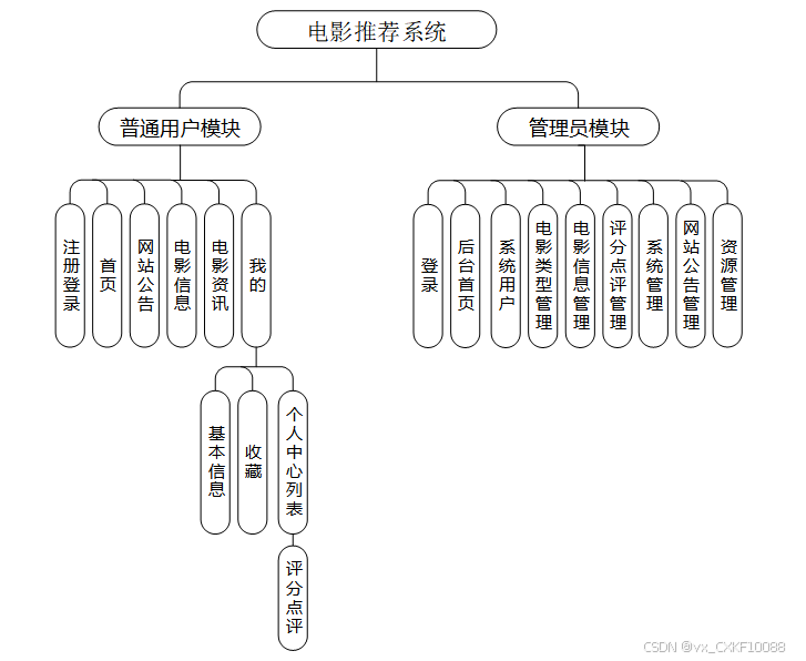 开发系统的核心功能模块,包括电影推荐模块、用户管理模块和管理员后台管理模块。推荐模块提供个性化电影推荐,用户管理模块支持用户信息的查看和修改,管理员模块则负责系统内容的维护和更新。